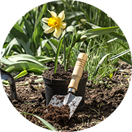Çalılar, ağaçlar,mevsimlik çiçekler, güller, çiçek soğanları, toprak kaplar,